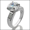Engagement 1.5 Brilliant Round 4 Prong Center Baguettes Cubic Zirconia Cz Ring