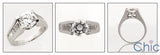 Unforgettable chic design ring with solid high polished shank and high quality round center and baguette cubic zirconias in channel setting.