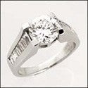 Engagement 1.5 Brilliant Round Baguettes Cubic Zirconia Cz Ring