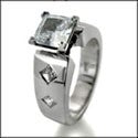 Engagement 1.5 Ct . Princess Center Burnished Princess Cubic Zirconia Cz Ring