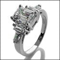 Engagement 1.5 Emerald Center Baguettes on Cubic Zirconia Cz Ring