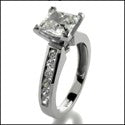Engagement 1.5 Princess Center Cathedral Cubic Zirconia Ring with Side Round Channel CZ 14K W Gold