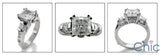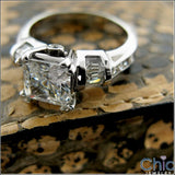 Elegant ring set with AAA high quality princess cut center in double prongs sides have combination of baguettes and round stones. Heavy Euro shank.