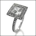 1.5 Princess Cubic Zirconia in Bezel Pave Halo 14K White Gold Engagement Ring