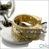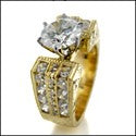 Cubic Zirconia Engagement 1.5 Round Center Ring Channel Sides Hand Engraved Shank 14K Gold