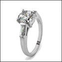 Engagement 1.5 Round tapered Baguettes Cubic Zirconia Cz Ring