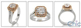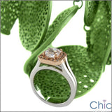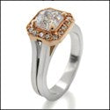 High Quality 1 Carat Asscher CZ Rose Gold Halo Two Tone Plain Band Cubic Zirconia Engagement Ring