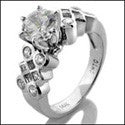 A elegant gourgeous engagement ring with high polished solid shank, with unique AAA quality round cut cubic zirconia center stone set in 6 prong tiffany setting, and the shank that has combination of round and princess cut high quality cubic zirconia stones set in bezel setting.