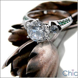 Engagement 1.5 Ct Center Round Emerald Green Cubic Zirconia Cz Ring