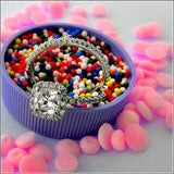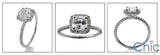 CUSHION CUT CUBIC ZIRCONIA 1.0 CARAT ENGAGEMENT RING . This 1 carat AAA High Quality, IGI certified cushion cut cubic zirconia is set in low prong setting. The cubic zirconia engagement ring's center stone is set in a halo with small pave set cz round stones. The dainty shank is toped with small round cz pave set stones as well.The stones on the band are set half way down the ring. The tiny round pave set stones add an antique, vintage touch to this elegant piece.The cubic zirconia engagement ring is made in solid 14k white gold. The "14k " stamp inscribed.
