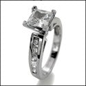Engagement 1 Carat Princess CZ Center Channel Set Round Baguette Sides Cubic Zirconia 14k W Gold Ring