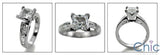 A brilliant engagement ring with a high polished solid shank, and AAA high quality princess cut cubic zirconia center stone, round and baguette cut stones on the sides in channel.