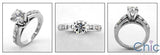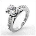 A beautiful engagement ring with high polished solid shank, with a high quality round cubic zirconia center stone, and princess cut cubic zirconia set in channel.