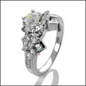 Engagement 1 Ct Round Center Channel Baguettes Cubic Zirconia Cz Ring
