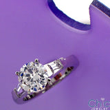 Engagement ring set with AAA quality cubic zirconia center stone in 4prong setting, sides have baguettes set in channel setting