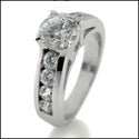 Engagement 1 Ct Round Center CZ Channel 14K White Gold Cubic Zirconia Ring