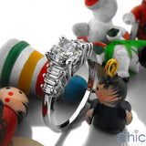 Engagement 1 Ct Round Center Step Baguettes Cubic Zirconia Cz Ring