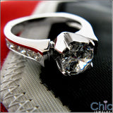 Modern engagement ring set with AAA high quality 1 Ct . round CZ in prong & princess cut on the sides in channelEuro shank