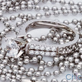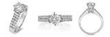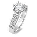 Engagement 1 Ct Round in 6 Prongs Ct 2 Rows of Pave Cubic Zirconia Cz Ring