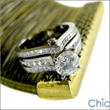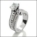 Engagement 1 Ct Round Cubic Zirconia Raised Center Channel Pave On Sides 14K White Gold Cz Ring
