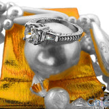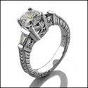 Engagement 1 Ct Round Tapered Baguettes in Channel Engraved Shank Cubic Zirconia Cz Ring
