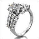 A unique gorgeous engagement ring with solid high polished shank, with round cut AAA quality cubic zirconia center stoneset in 6 prong tiffany setting, and with princess and round cut high quality cubic zirconia stones in channel and prong setting on the sides.