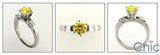 1 Carat Yellow Canary Cubic Zirconia Round Center Channel Baguette Engagement Ring 14K White Gold