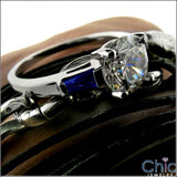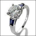 Engagement 2.25 Round Diamond CZ witihandsapphire Baguettes Cubic Zirconia Cz Ring