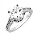 An attraCt ive engagement ring with a solid engraved shank and a high quality round diamond cubic zirconia in prong setting and round cubic zirconias in pave setting.