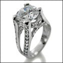 2.5 Round Center Cubic Zirconia Split Pave Shank Milligree 14K White Gold Ring