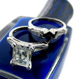 2.0 AAA high quality emerald cut diamond quality cubic zirconia center stone, with tapered baguettes in channel setting.