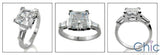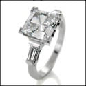 A stylish engagement ring with a high polished solid shank, with a high quality princess cut cubic zirconia center stone set in v prong, and tapered baguettes on the sides.