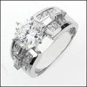 Engagement 2 Ct Round CZ Channel Princess Baguettes Cubic Zirconia 14K Gold Ring