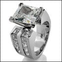 Eye catching engagement ring set with 3-carat AAA quality princess cut in 4-prong setting & princess cut CZ’s set in channel on the sides.