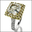 Engagement 3 Ct Princess Yellow Gold Halo Cubic Zirconia Cz Ring