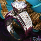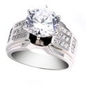 Cubic Zirconia 3 Carat Round Center 10.5mm Wide Shank Channel Set 14K W Gold Engagement Ring
