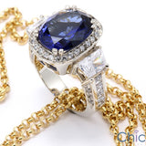 Engagement 5 Ct Oval Sapphire Trapezoid Two tone Cubic Zirconia Cz Ring