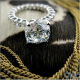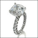Eye catching engagement ring set with AAA high quality AAA Rounded Cushion cut cubic zirconia in 4 prong's Tiffany setting. The shank has eternity style set round stones in prong setting.