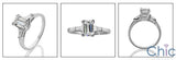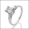 0.75 emerald cut diamond quality cubic zirconia center stone, with tapered baguettes.