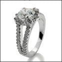 Engagement .85 Round Center Split Shank Pave Set Cubic Zirconia 14K W Gold Ring