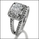 Classy ring set with AAA high quality Asscher cut stone in prong setting. Split shank covered by pave set stones that also surround the main stone.