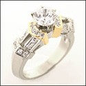 A Special Occasion ColleCt ion two tone ring with a round high quality cubic zirconia in a six prong tiffany style setting and round zirconias on the sides in pave setting.