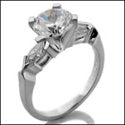 Classy 3 stone engagement ring. This style is showcasing AAA high quality, IGI certified 1 carat round center stone with side marquise. The center stone is set in 4 prong Tiffany style setting. The side Marquise cz's are set in channel prong combination setting. The width of the shank is 2.5 mm wide. Our cubic zirconia stones have the same exaCt dimensions as an ideal cut natural diamond. The stones have great amount brilliance and depth.