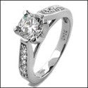 A stylish beautiful engagement ring with high polished solid shank, with diamond color round cut high quality cubic zirconia center stone set in prong setting, and with round cut cubic zirconia stonesset in pave on the sides.