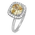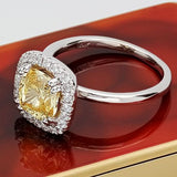 Engagement Canary Cushion Cut 2 Carat Halo Cubic Zirconia 14K White Gold Ring