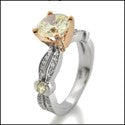 Engagement Canary round 1.5 Ct Center Rose Gold Two Tone Cubic Zirconia Cz Ring