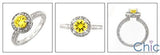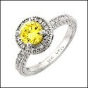 Engagement Canary Round In Halo Engraved shank Cubic Zirconia Cz Ring
