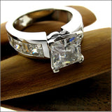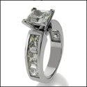 2 Carat Princess Center CZ Engagement Ring Channel Set Baguettes and Princess Sides 14K White Gold