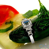 Emerald Cut 1 Ct Center Princess Baguette Channel Sides Cubic Zirconia Engagement Ring 14K White Gold