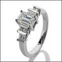 A high quality AAA one carat emerald cut set in prongs. Sides have tapered baguettes and princess cuts in channel